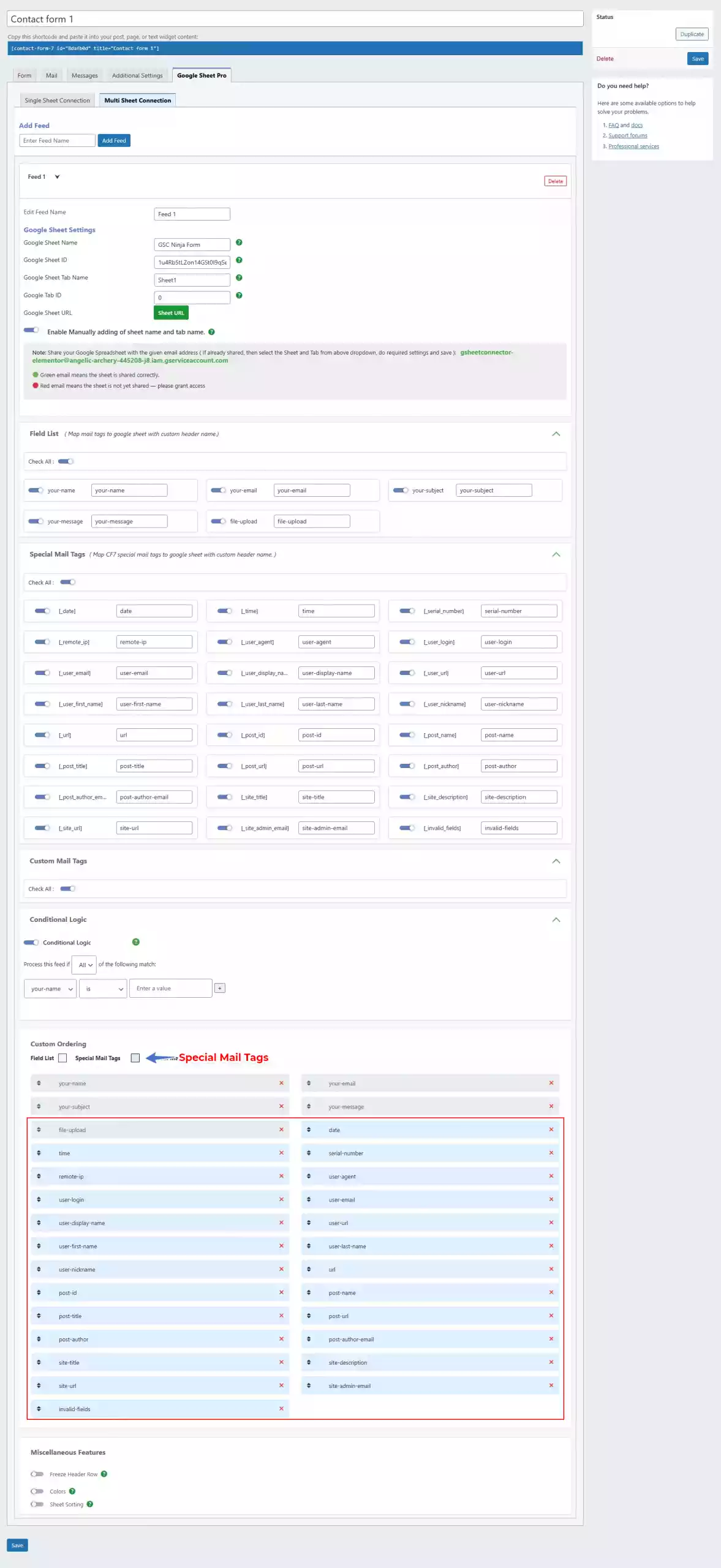 👉 You can also refer to the guide: How to use Custom Mail Tags for CF7 Google Sheet Connector.