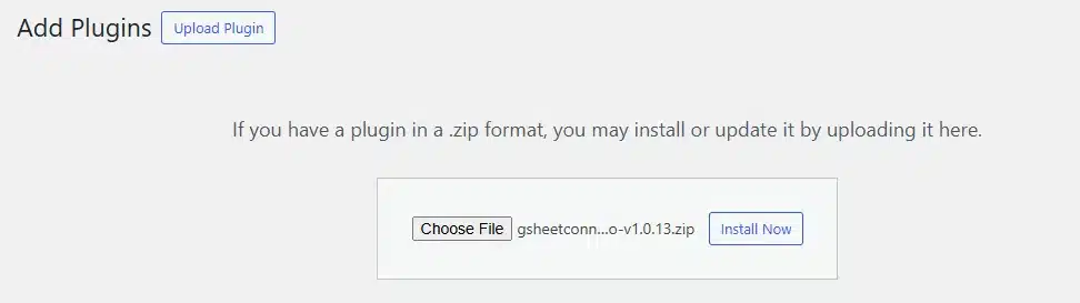- Click the “Choose File” button and select the downloaded plugin file from your computer.