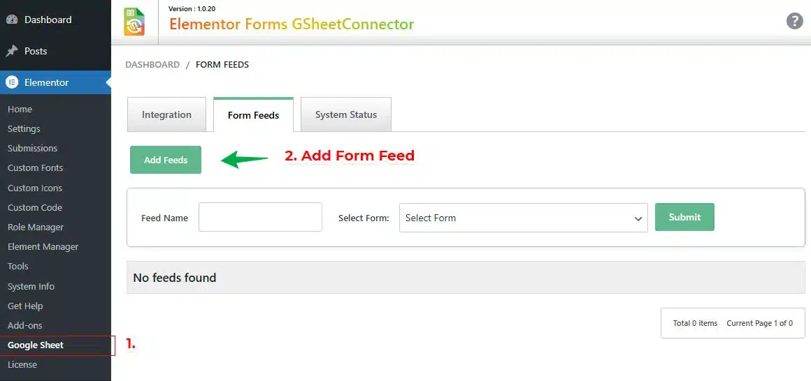 - Go to Wp-admin > Elementor > Googgle Sheet Connector.