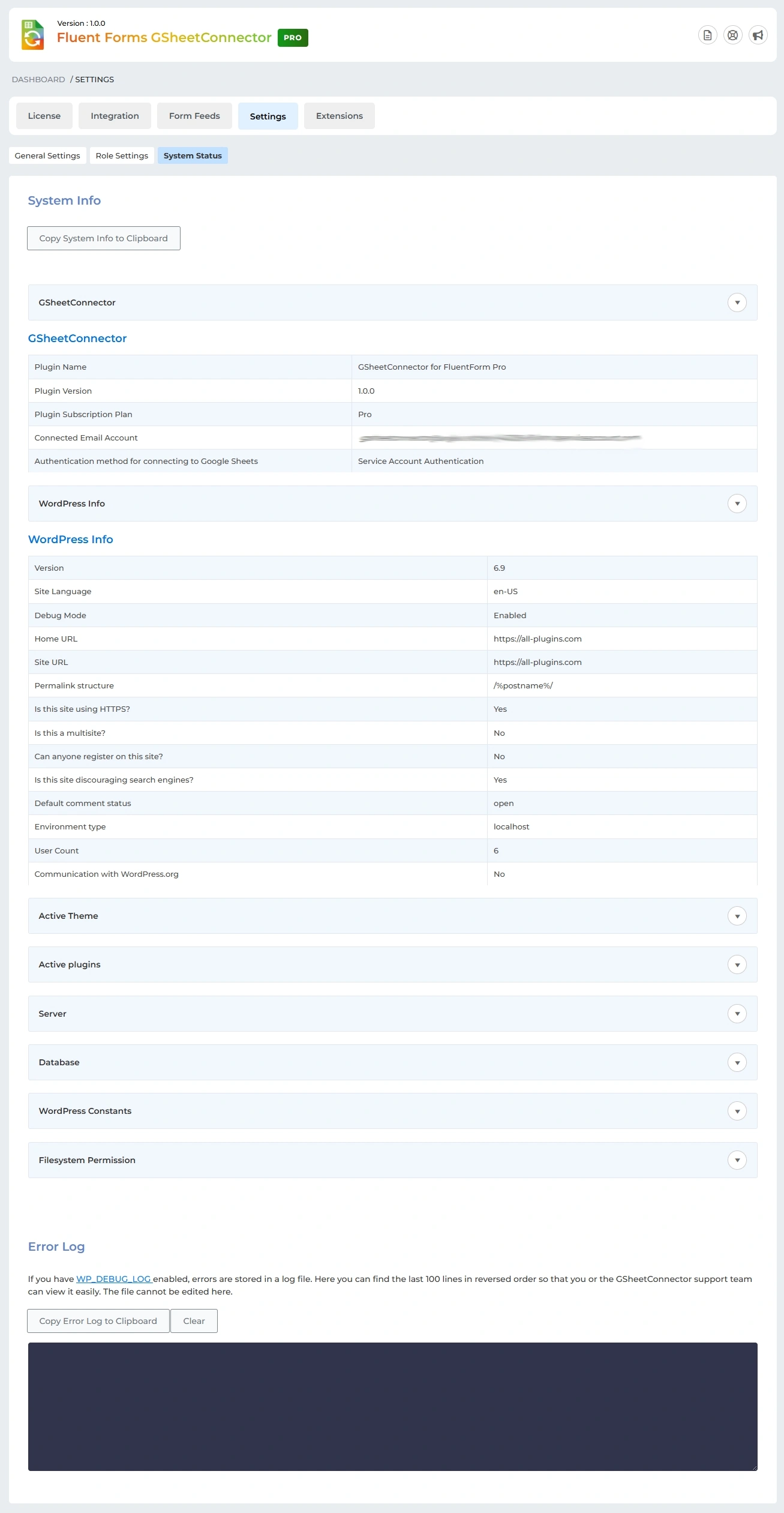 The System Status page provides detailed diagnostic information to help with troubleshooting.