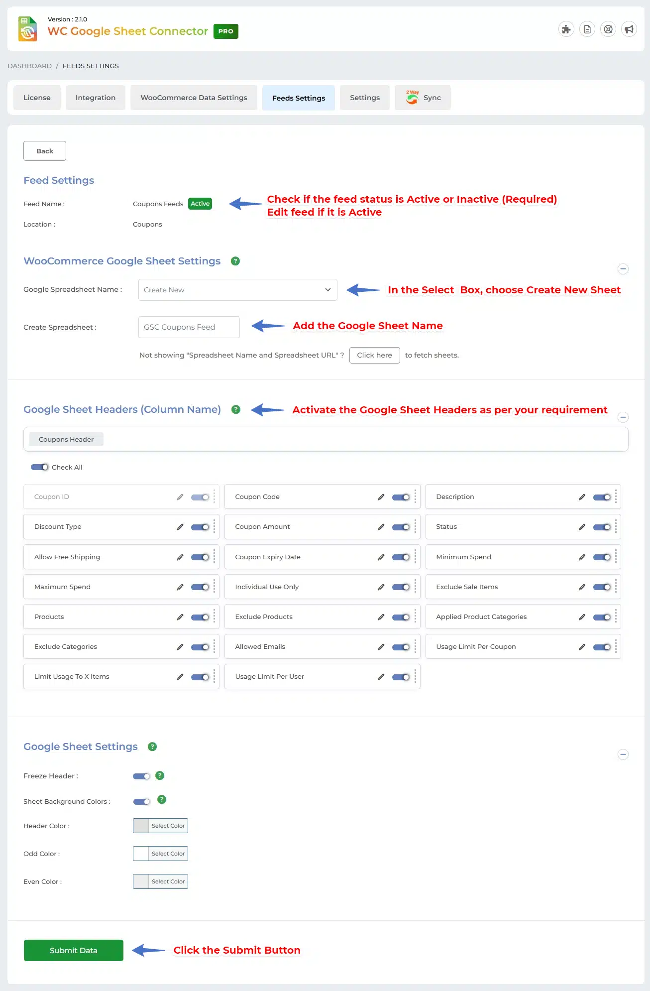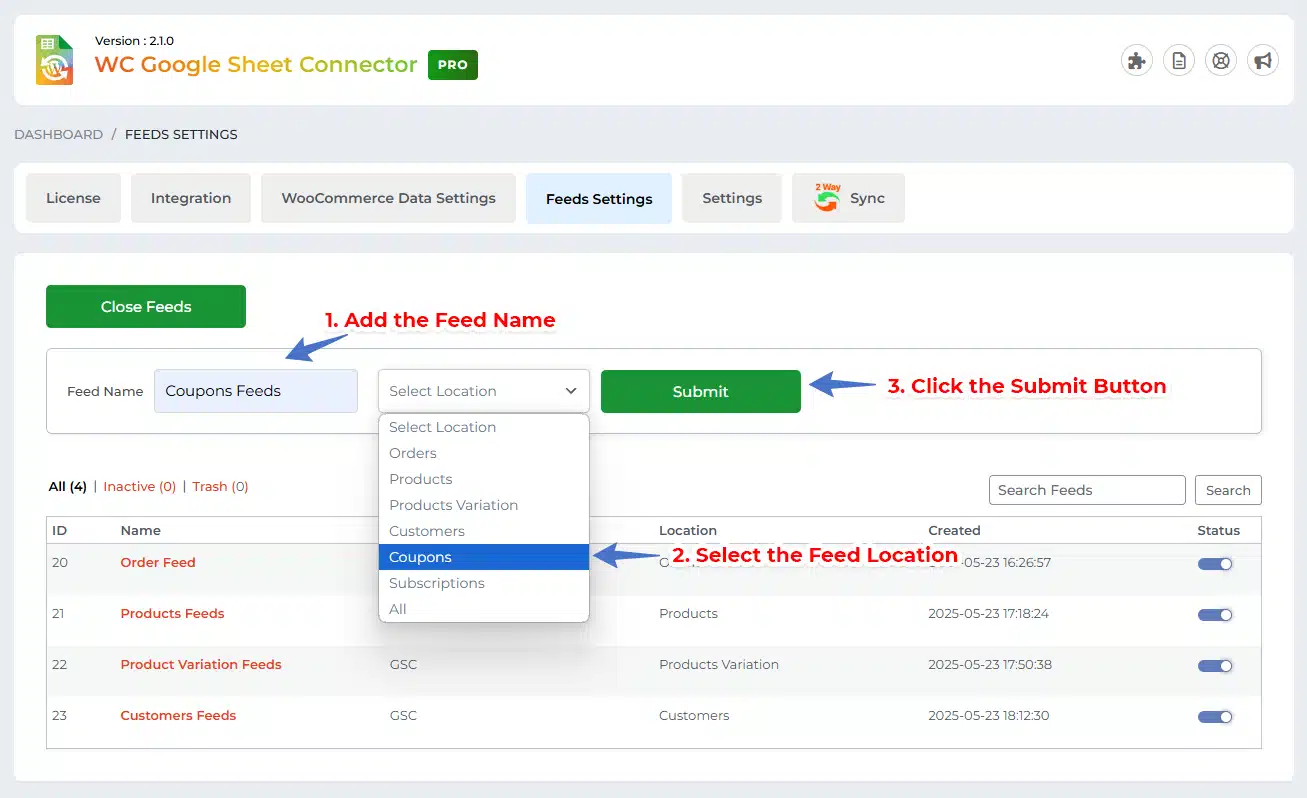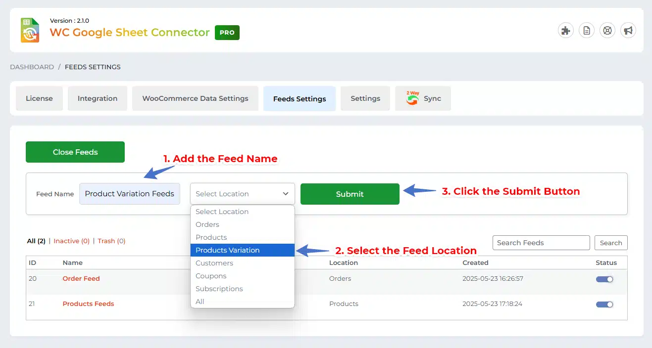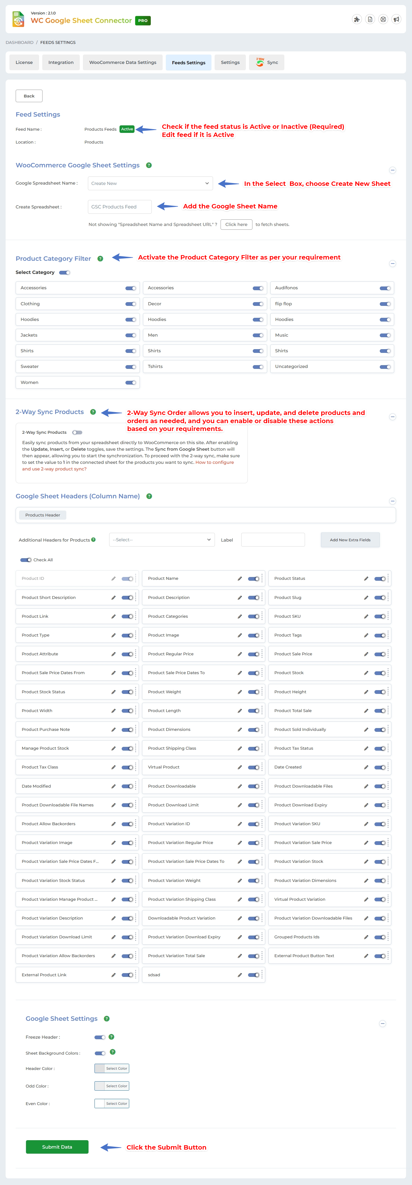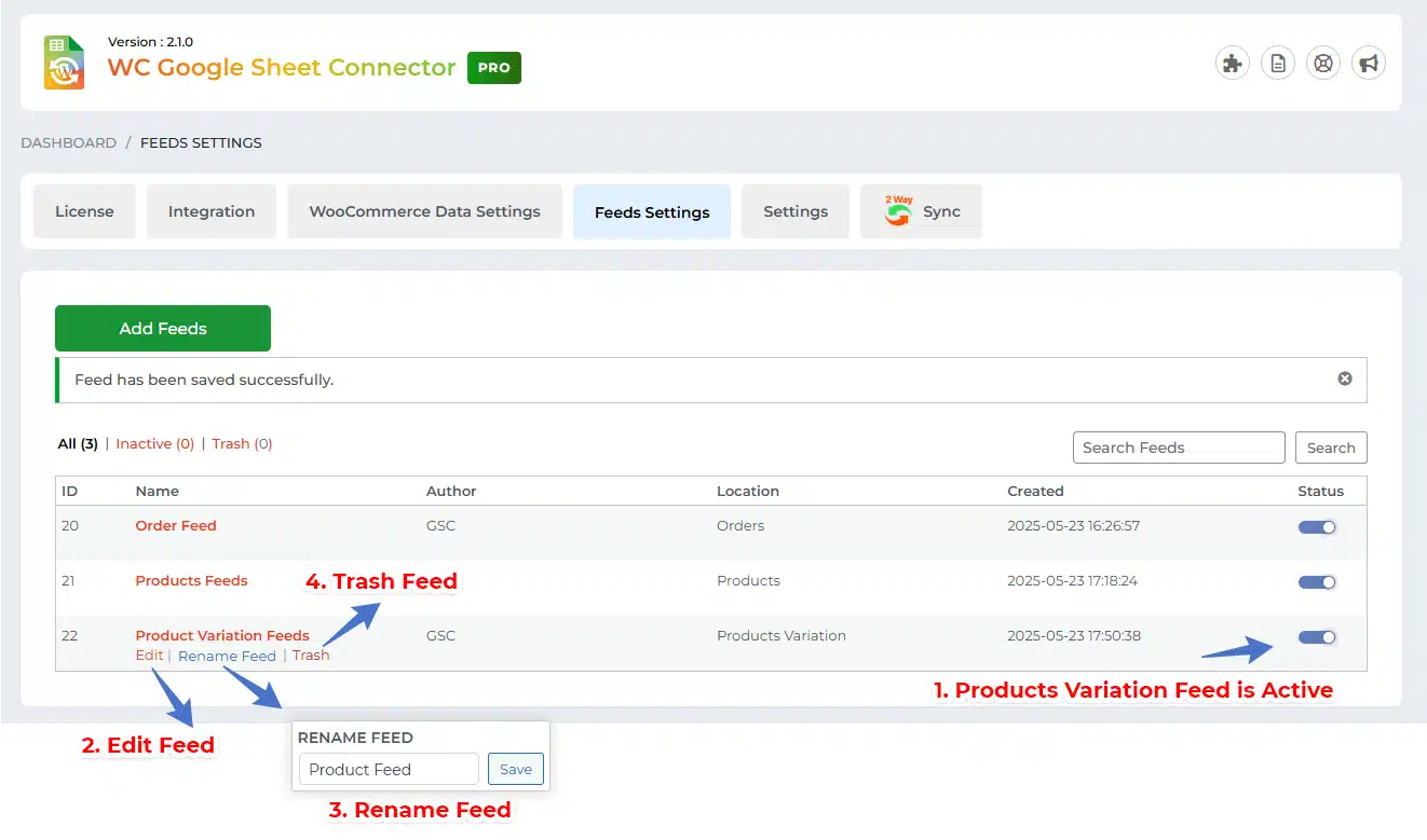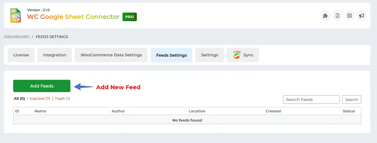 The new Feed Settings feature has been added in WooCommerce GSheet Connector Latest Version 2.0.37.