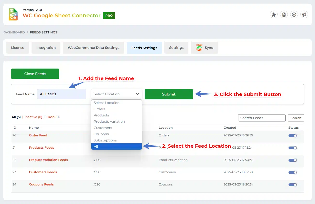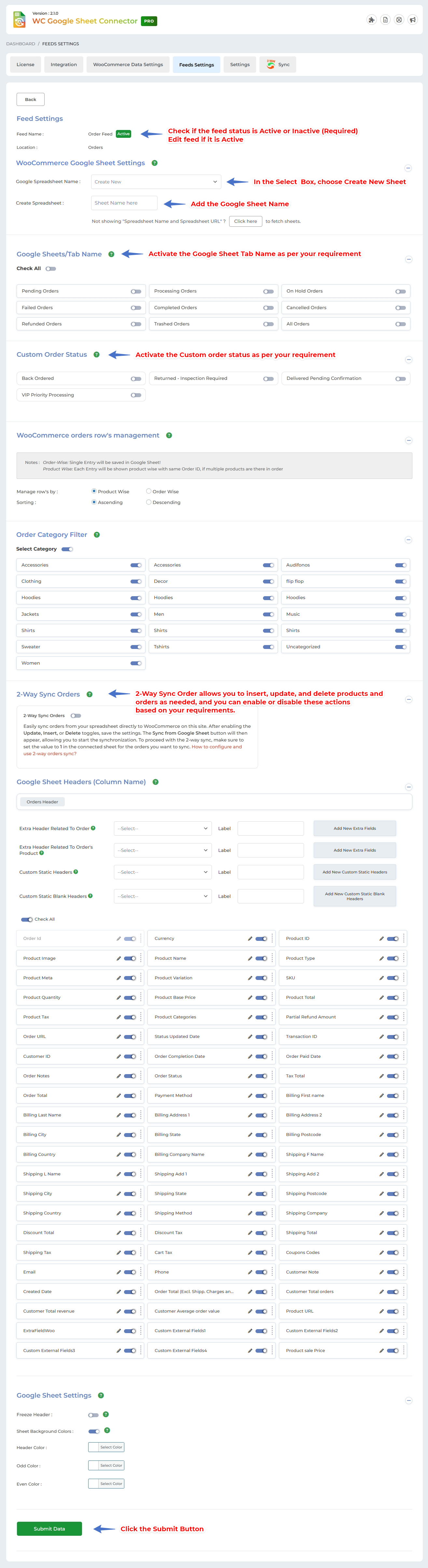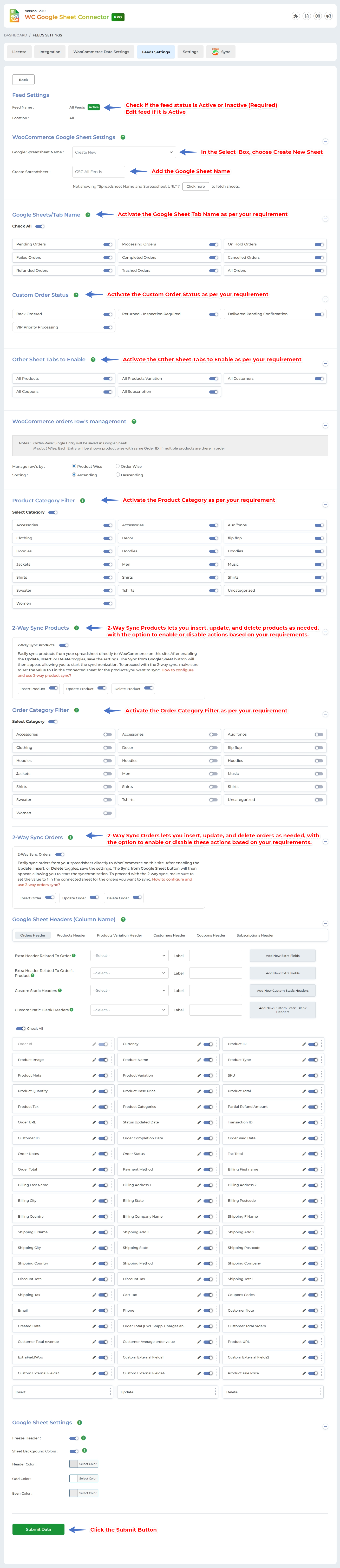 The Feed Setting feature allows you to create and manage separate Google Sheets for different types of data – giving you more control and flexibility.