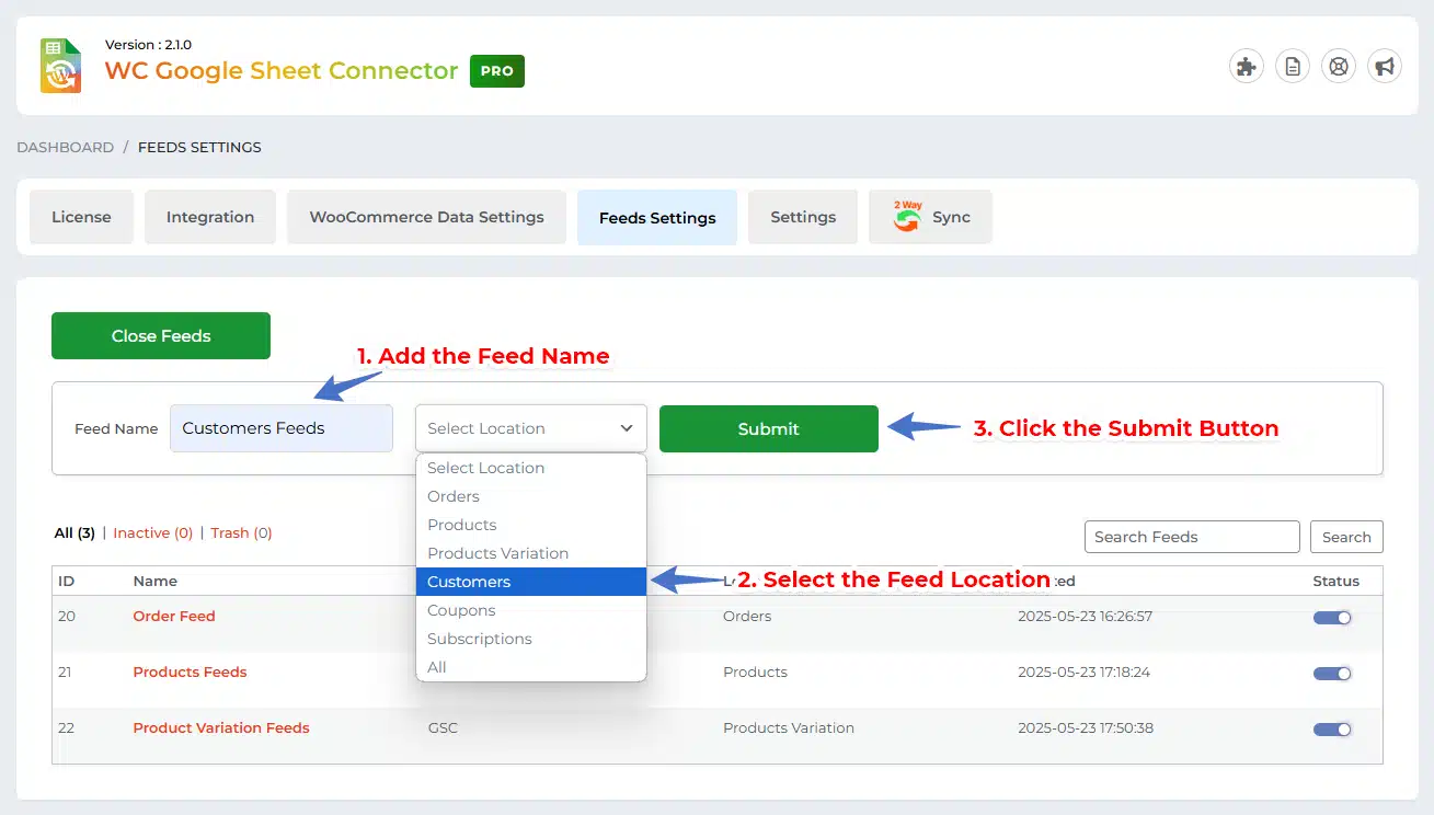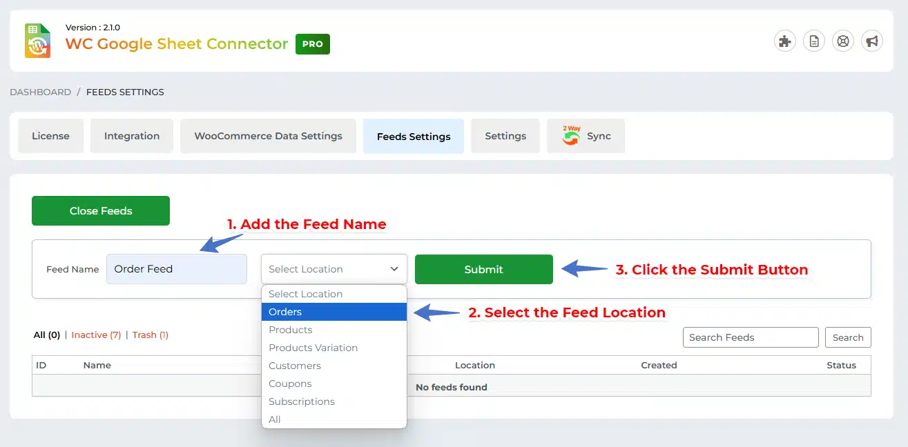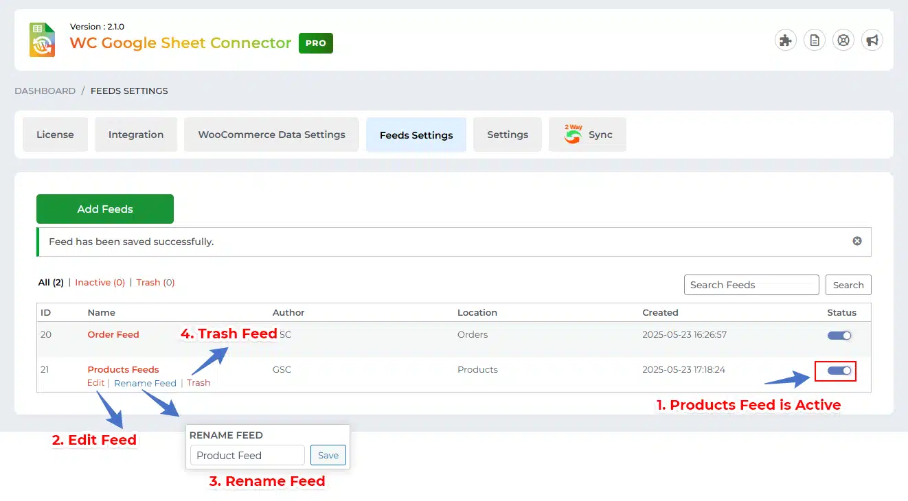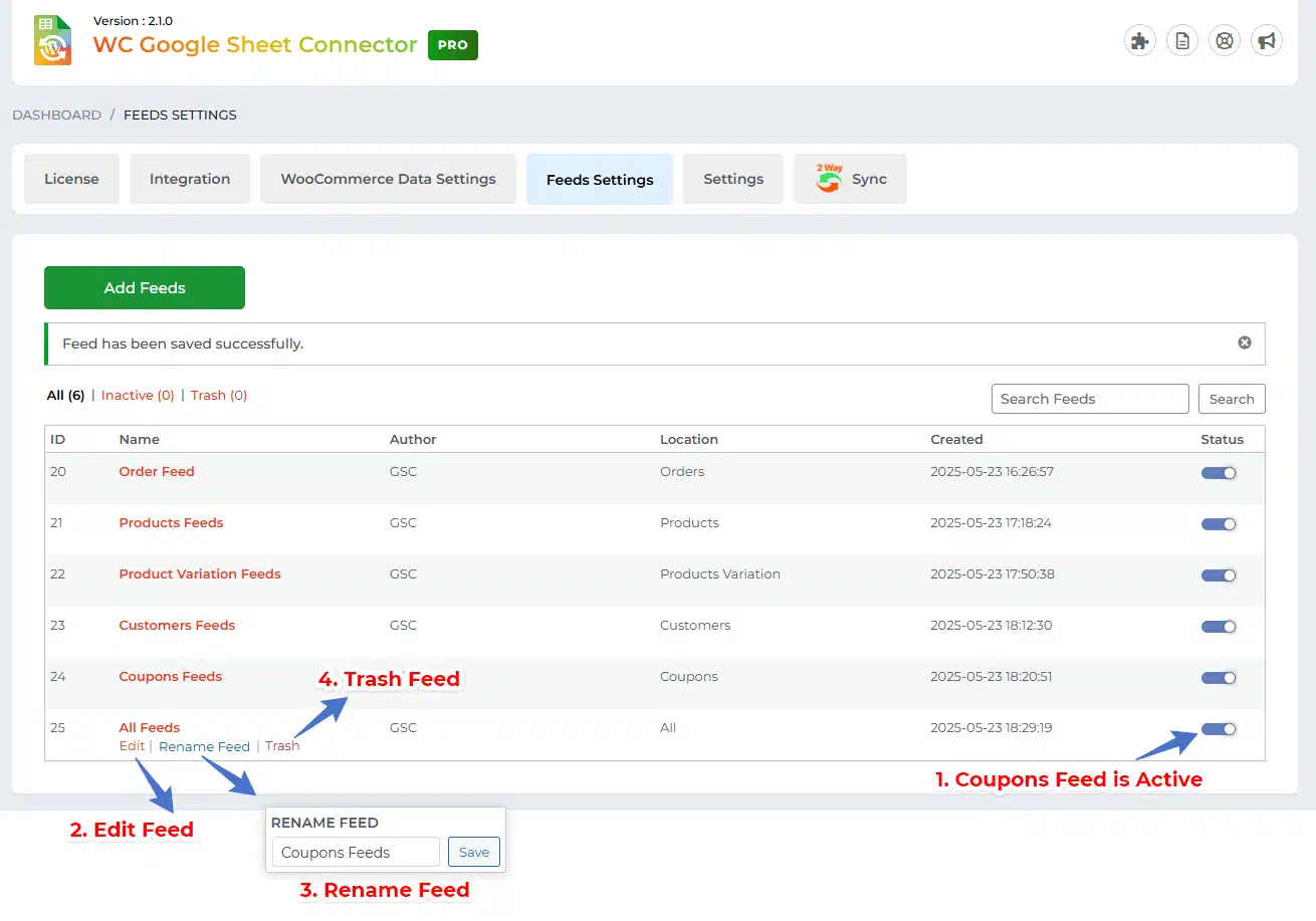 The Feed Setting feature allows you to create and manage separate Google Sheets for different types of data – giving you more control and flexibility.