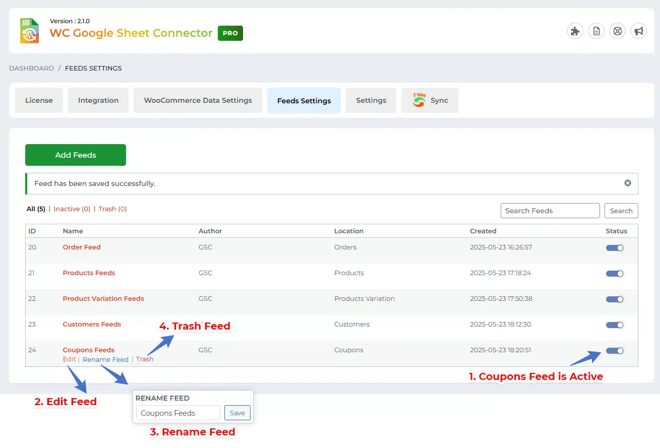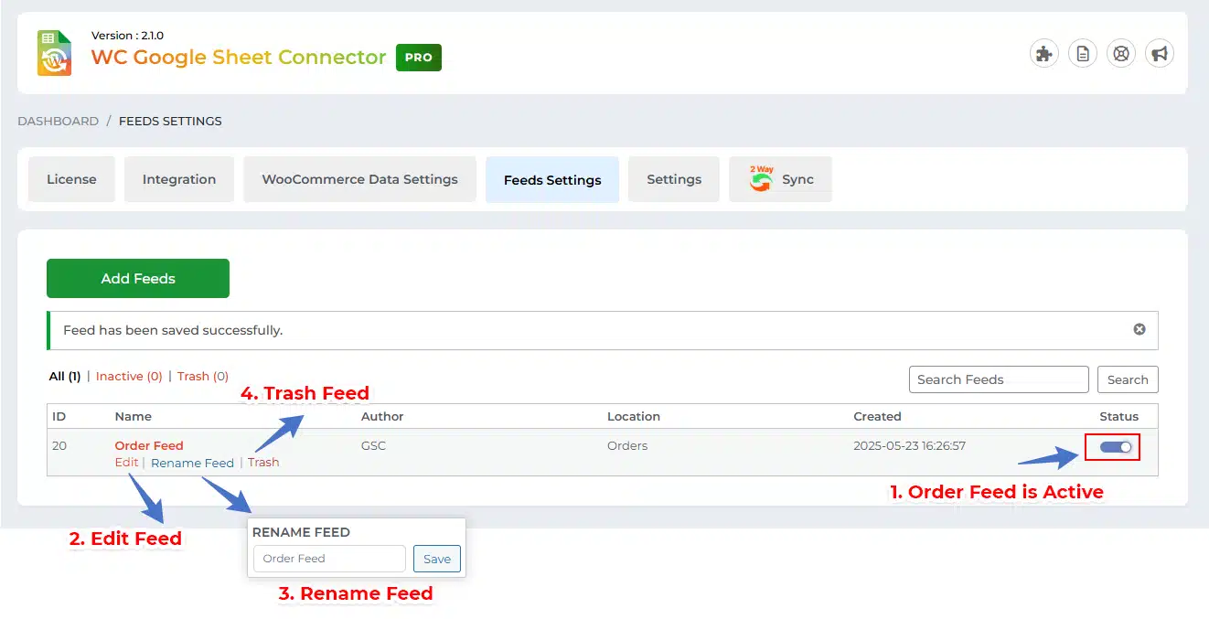 - Once activated, go to the Feed Settings option and click on Add Feed.