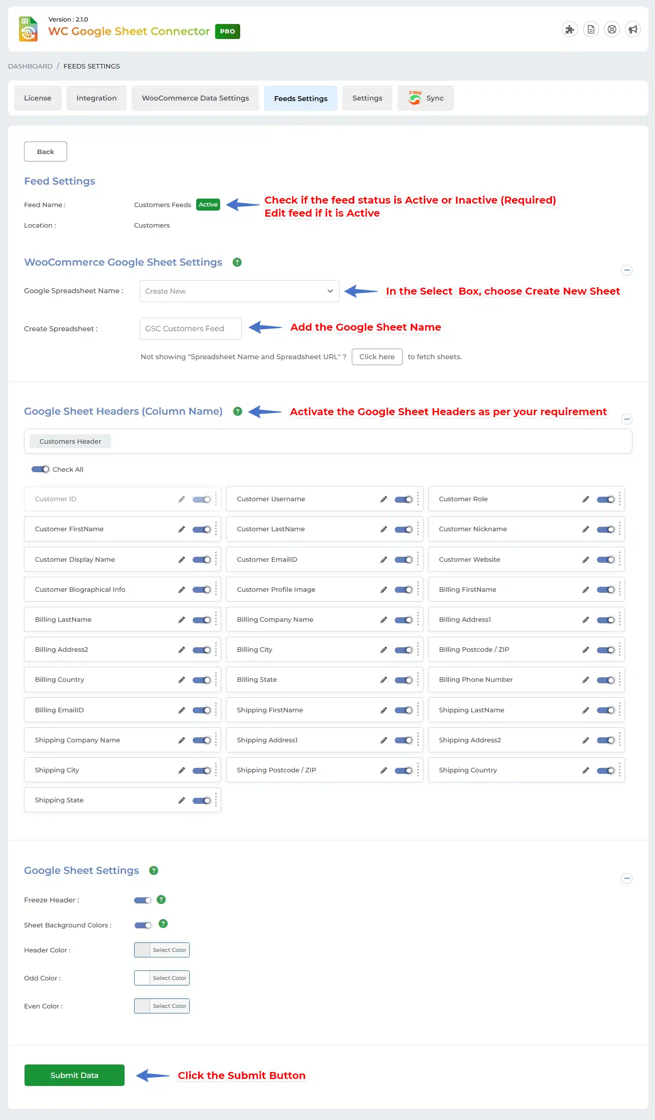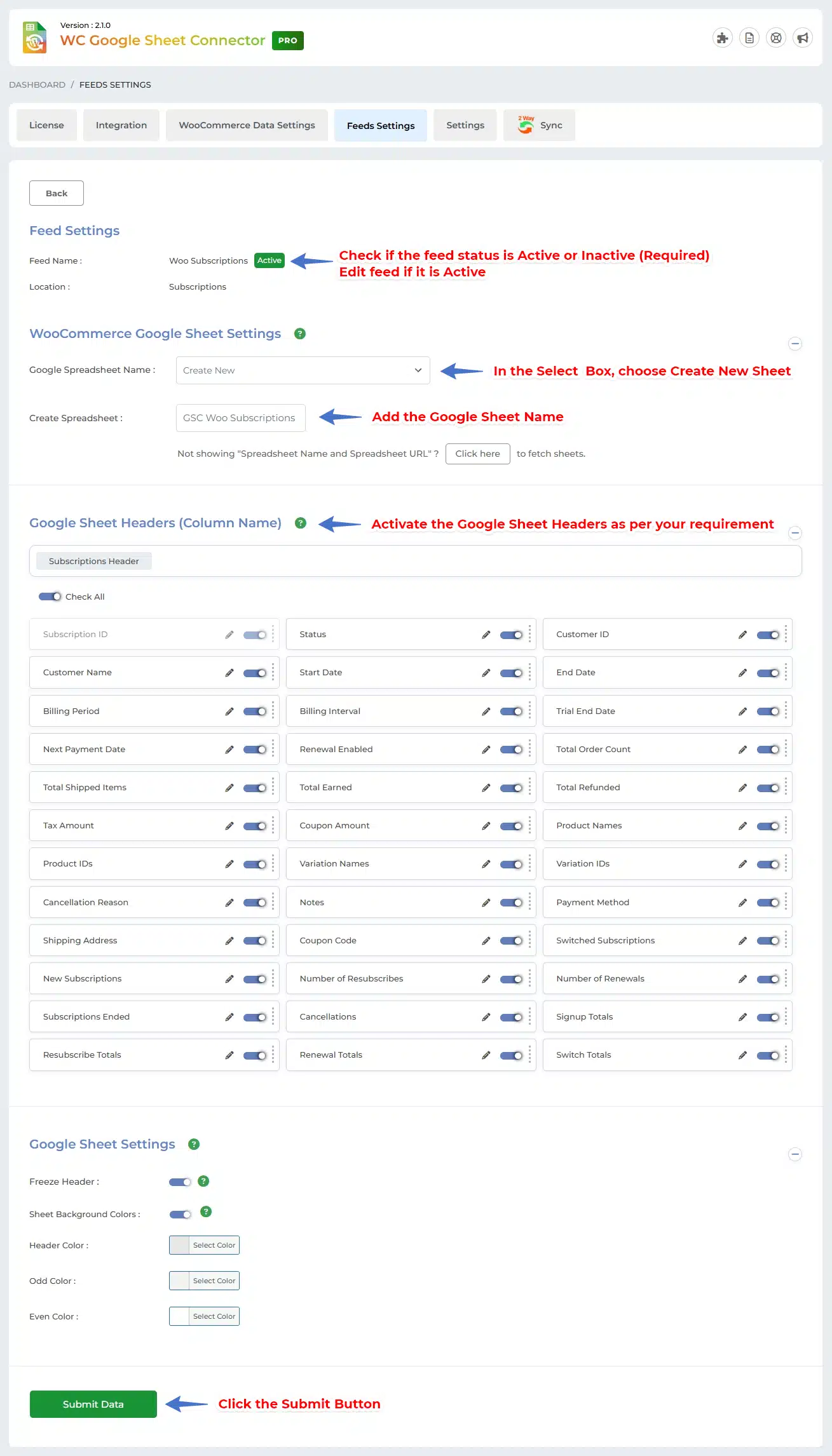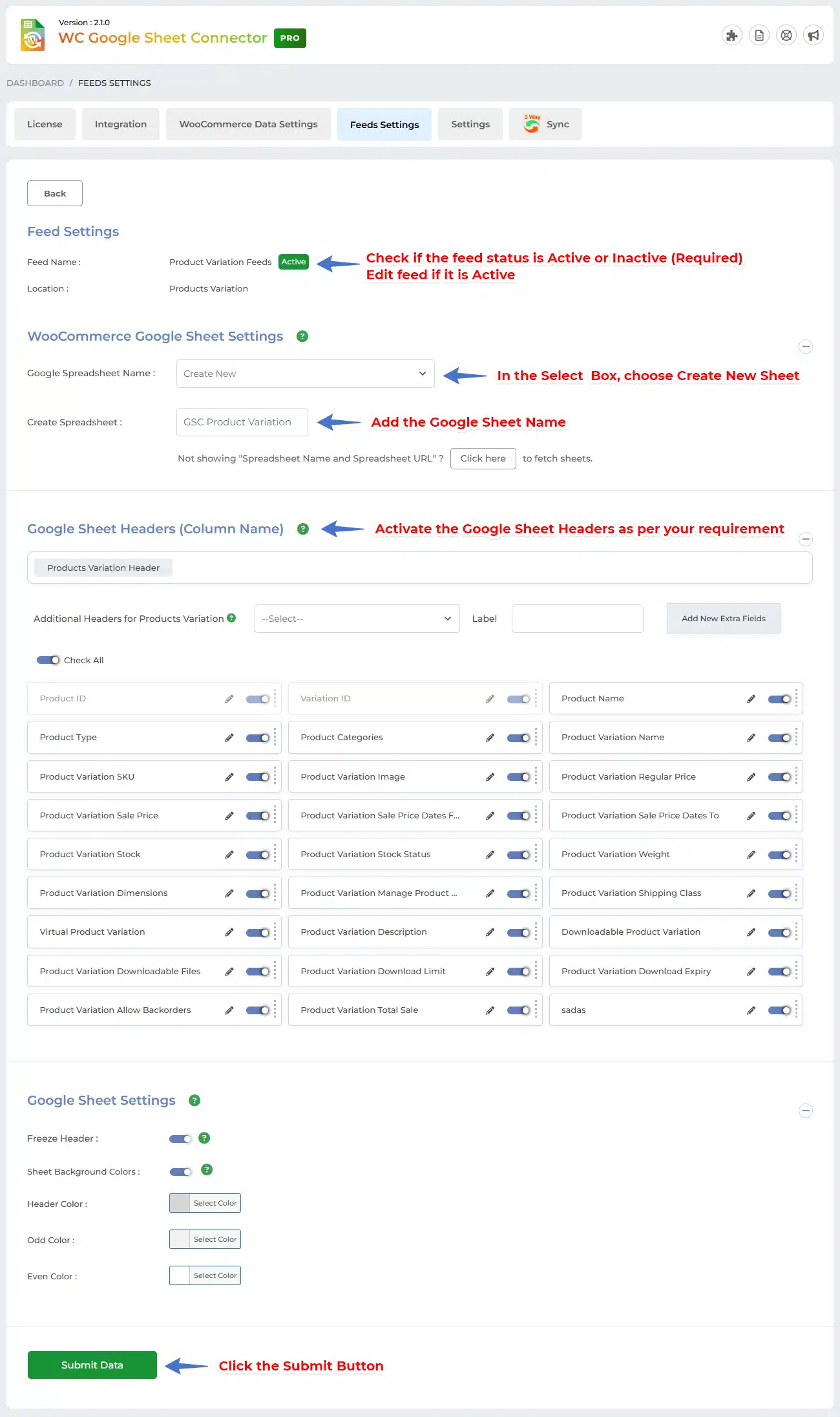 - Google Sheet Tab Name – Activate the Google Sheet Tab Name as per your requirement.