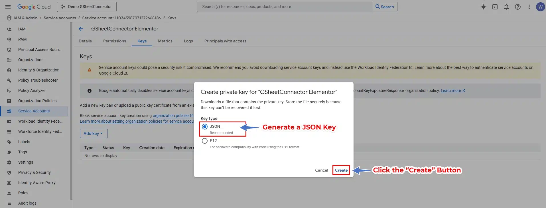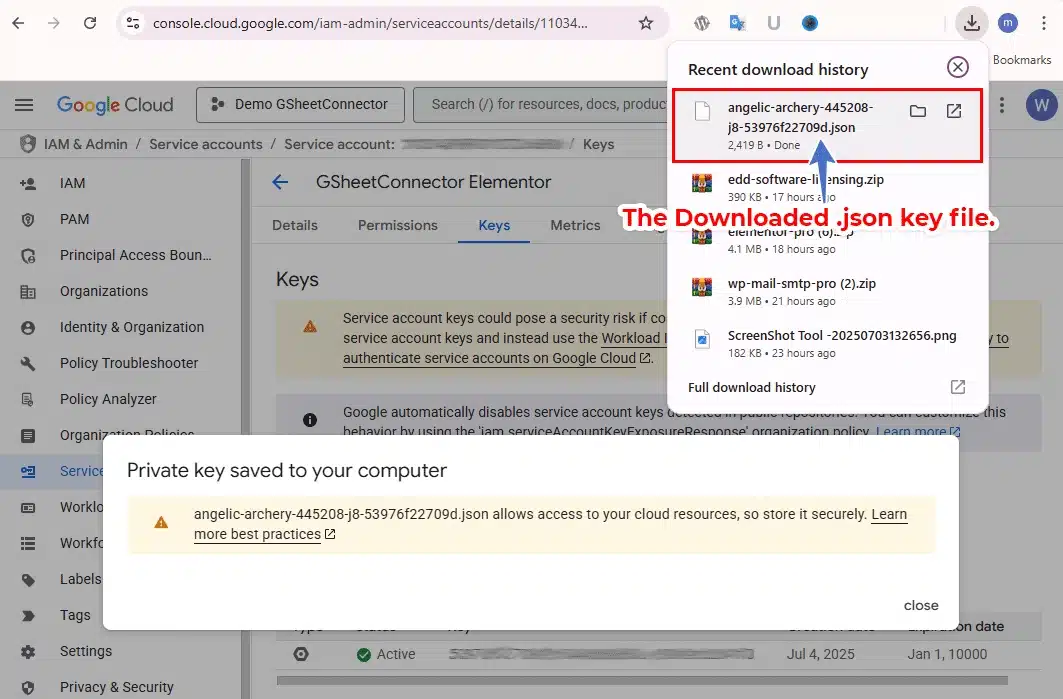 Now, every new Elementor form submission will be sent to your selected Google Sheet using the service account.