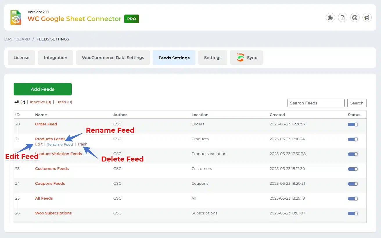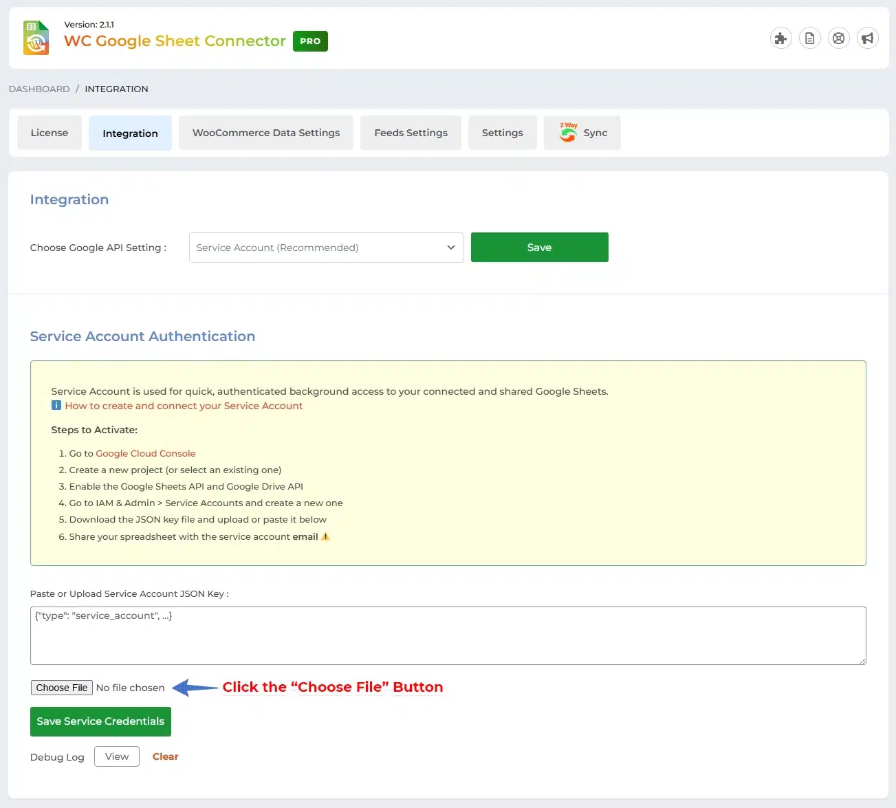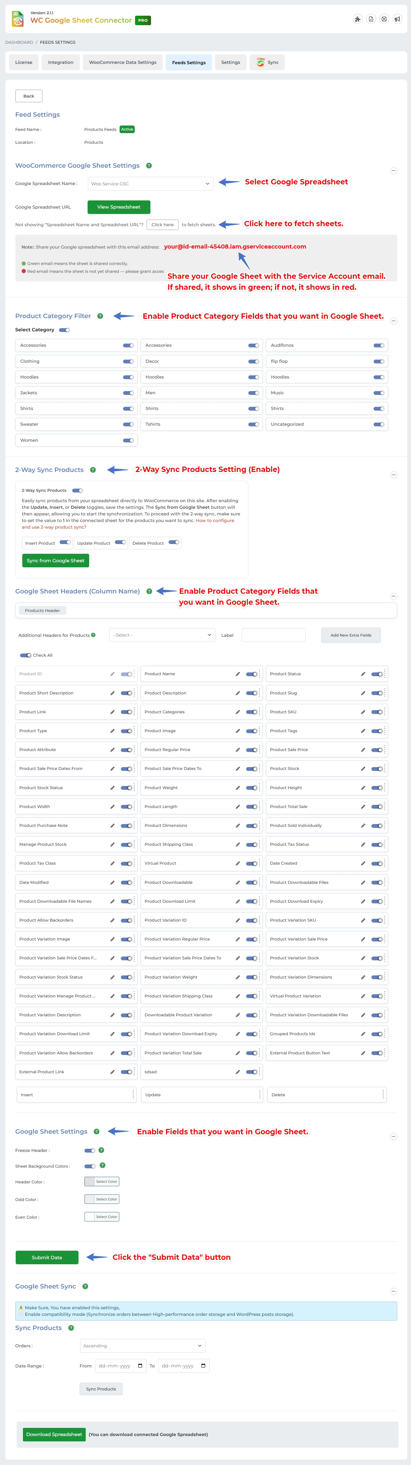 In Feed Settings, whether you choose Auto or Manual, first share your Google Sheet Settings with your Service Account email ID. After saving the Feed Settings, a label will appear in your sheet, and your Service Account email ID will be displayed in green at the top of the Google Sheet Settings section.