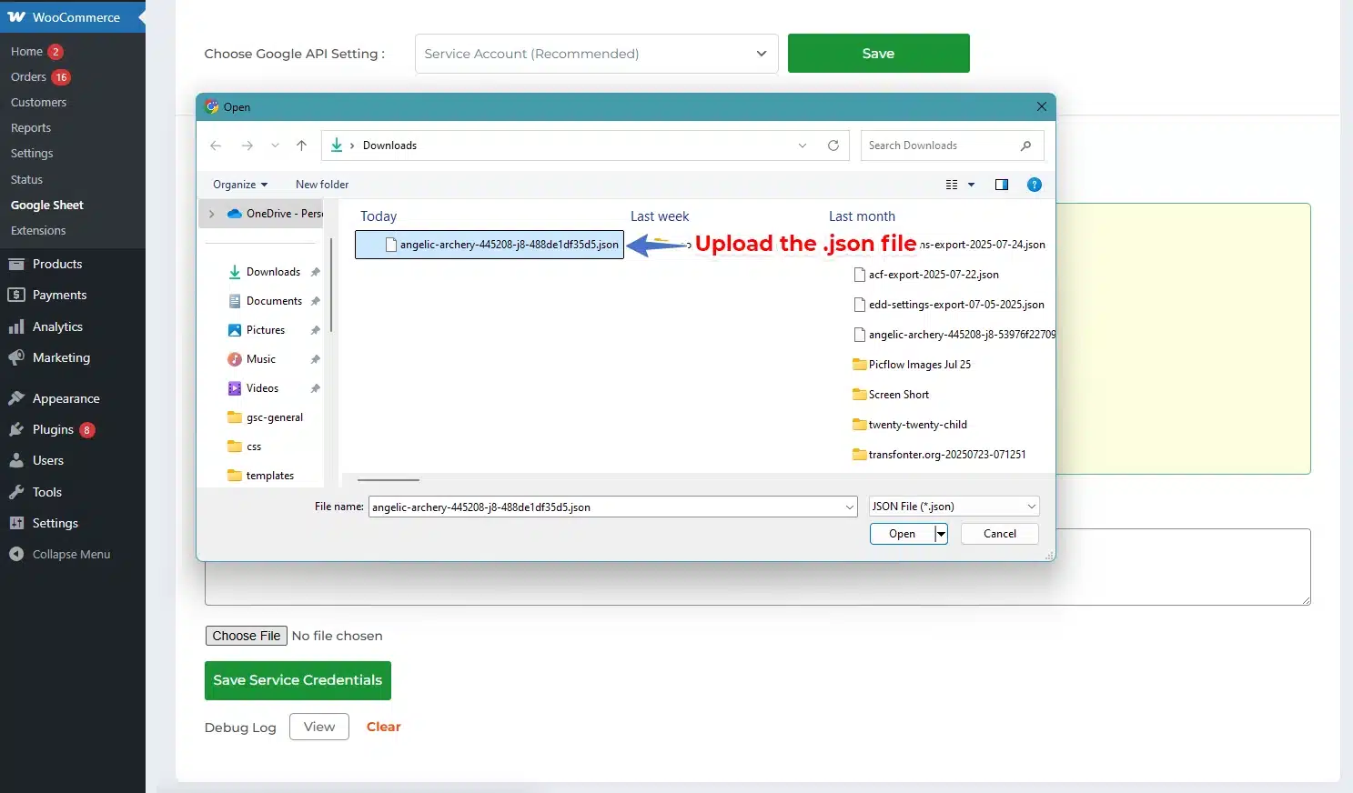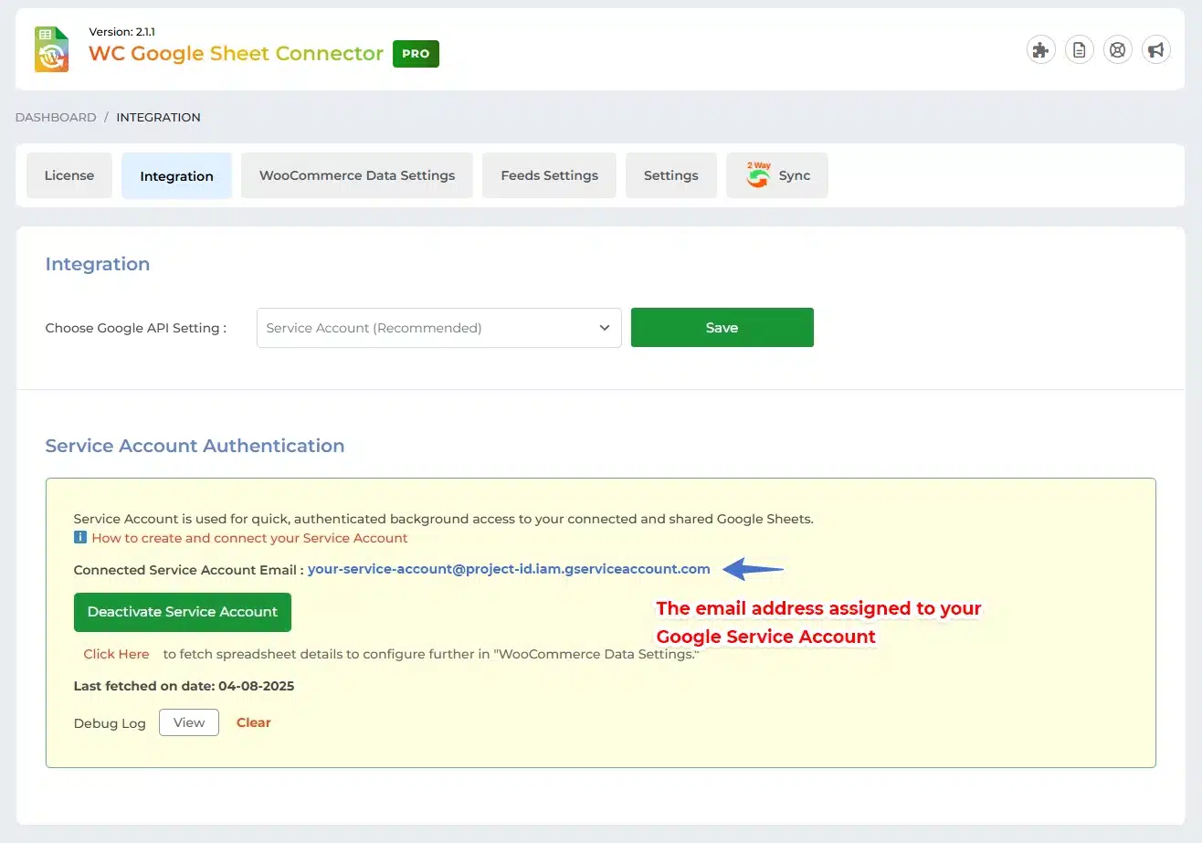 In Google Sheet Settings, all sheets linked to your Service Account email will be fetched automatically and shown in the dropdown.