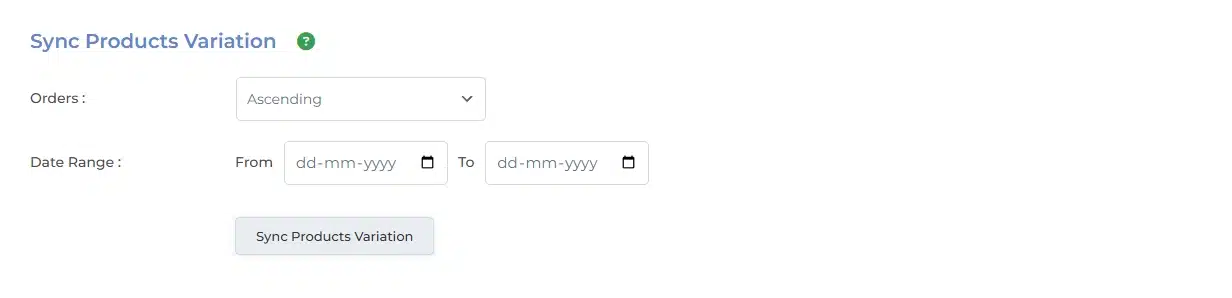 Sync Products Variation is for syncing products variation in Ascending manner or descending manner for a specific period of time.