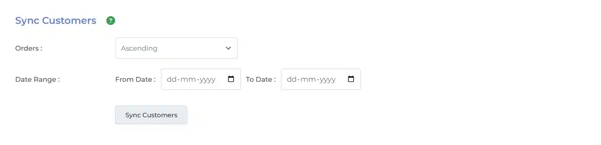 Sync Customers allows you to synchronize orders in either ascending or descending order for a specific time period. If you have a large volume of data, ensure you select a date range of 15 days or one month to avoid Google Quota Limit issues.