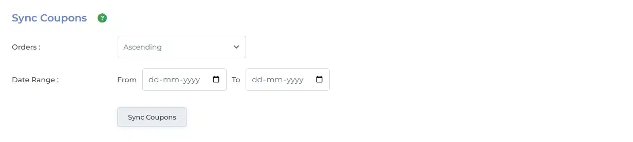 Sync Coupons is for syncing Coupons in Ascending manner or descending manner for a specific period of time.