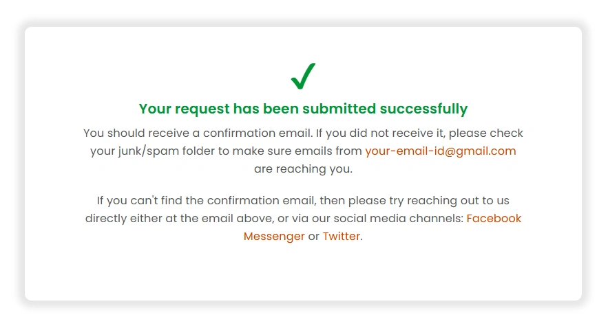 /* Show custom success message after submission */