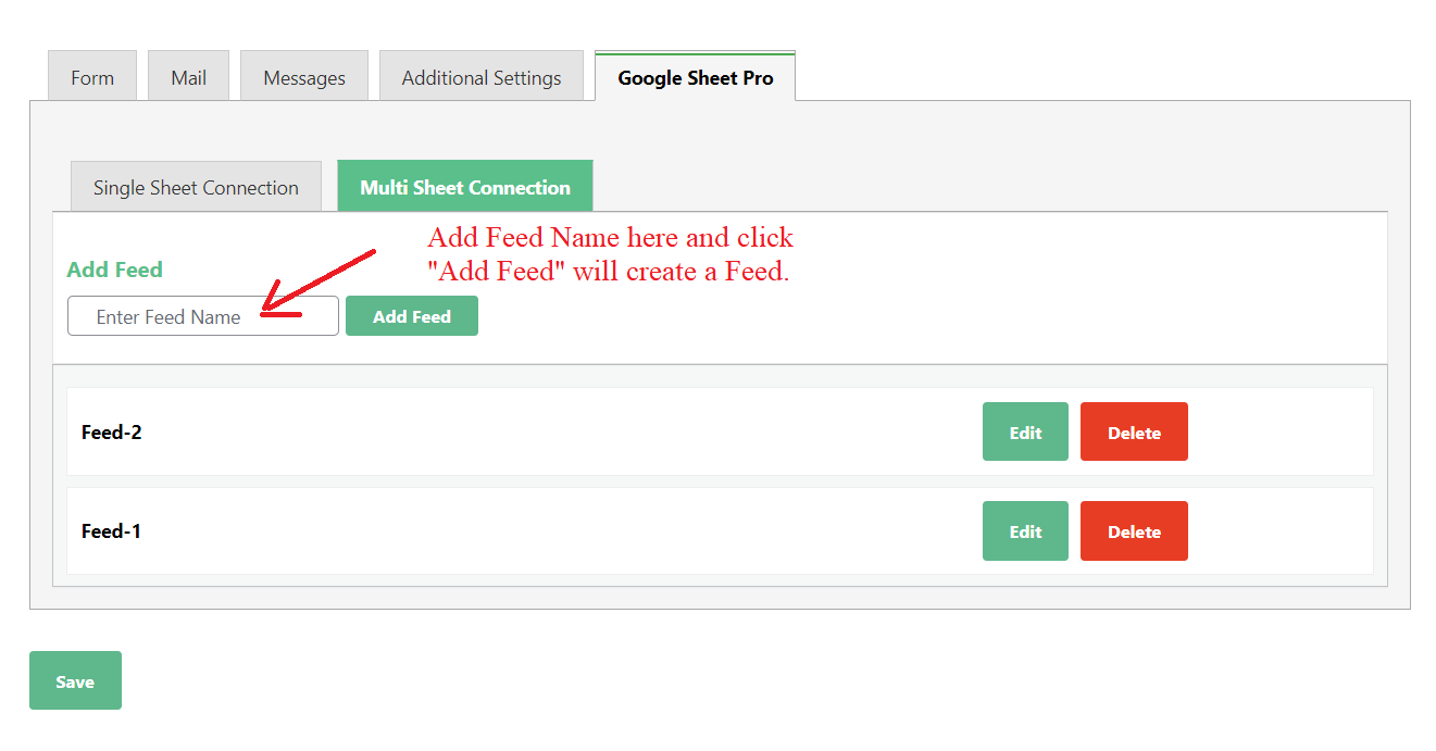 In version 2.3.13, we have added Multisheets while creating new feed along with Conditional Settings, Multisheet Connection enables the linkage of a single Contact Form to multiple Google Sheets or individual tabs within those sheets, all within the same connected Google Account. This feature allows you to selectively save specific field data from the Contact Form into different spreadsheets or tabs, providing a flexible and organized way to manage and store your data. Refer the screenshots below,