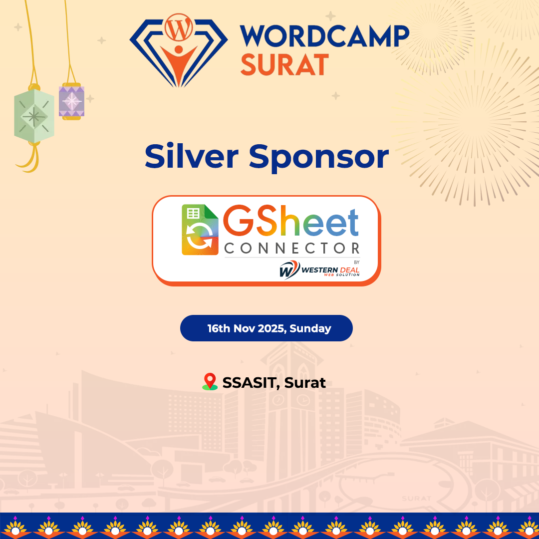 We’re thrilled to announce that GSheetConnector is a Silver Sponsor of WordCamp Surat 2025, happening on 16th November 2025 (Sunday) at SSASIT, Surat. 🎉